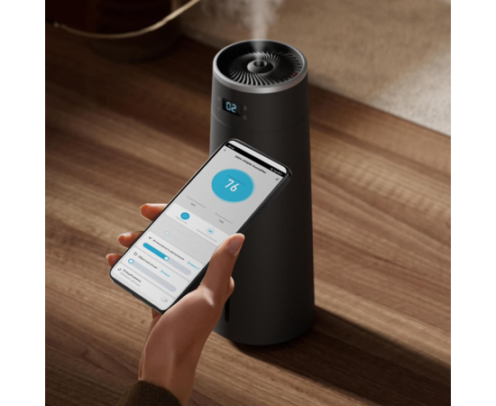 До 24 часов увлажнения от одной заправки, управление с помощью голосового ассистента Алиса, 8 литров объём резервуара, 3 режима интенсивности, управление с помощью смартфона