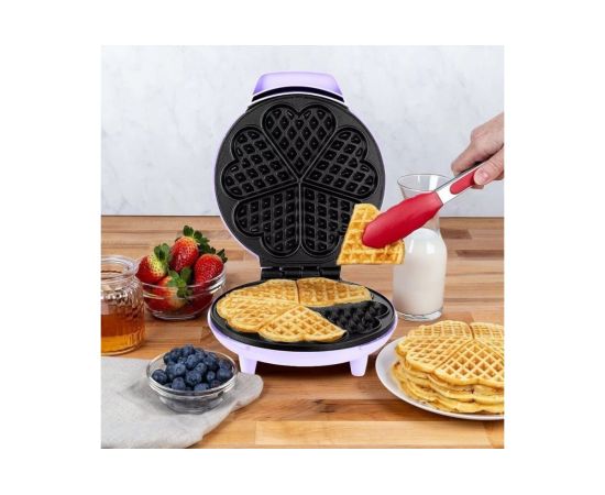 Вафельница выполнена в нежном лавандовом оттенке. Подойдёт в подарок и впишется в любой интерьер, украсив кухню. Прибор оснащен индикаторами питания и нагрева, которые сочетаются с цветом корпуса.
