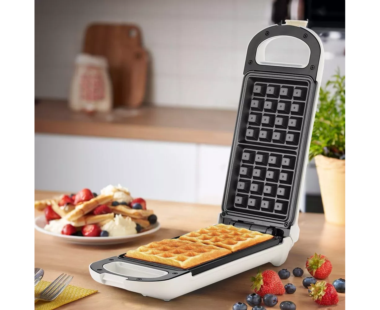 На формы вафельницы нанесено антипригарное покрытие. А также в комплекте с вафельницей идёт кисточка, которая поможет вам равномерно распределить масло по поверхности формы, сократив его расход и обеспечивая ещё более лёгкое приготовление вафель.