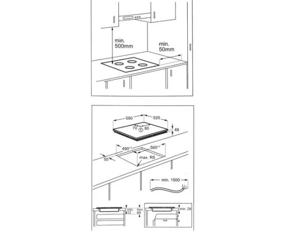 Размеры для встраивания560x490мм