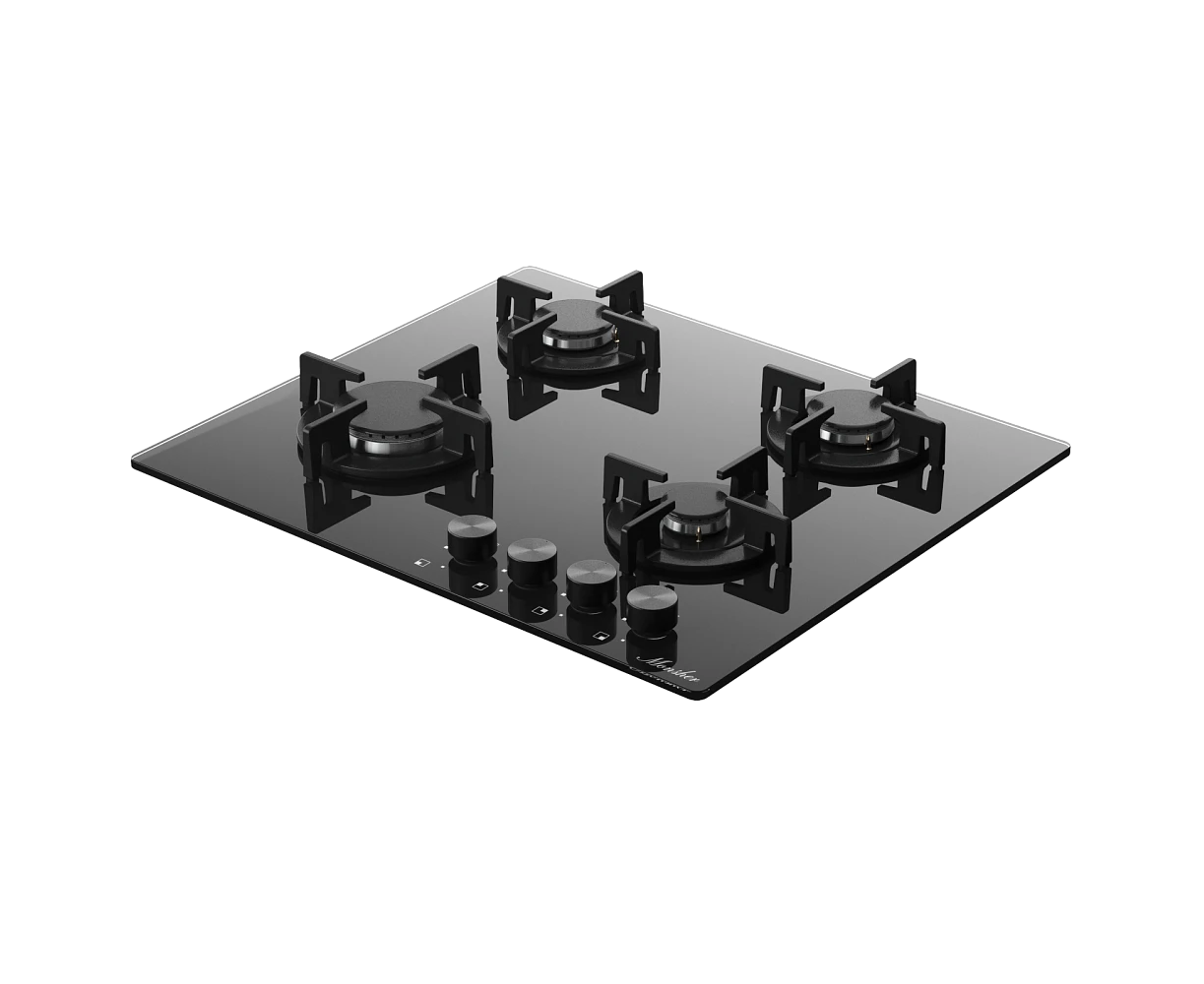 Варочная поверхность MONSHER MGG 64 Noir High-Tech, газ, 59см, газ-контроль, автоматический электроподжиг, чугунные решетки