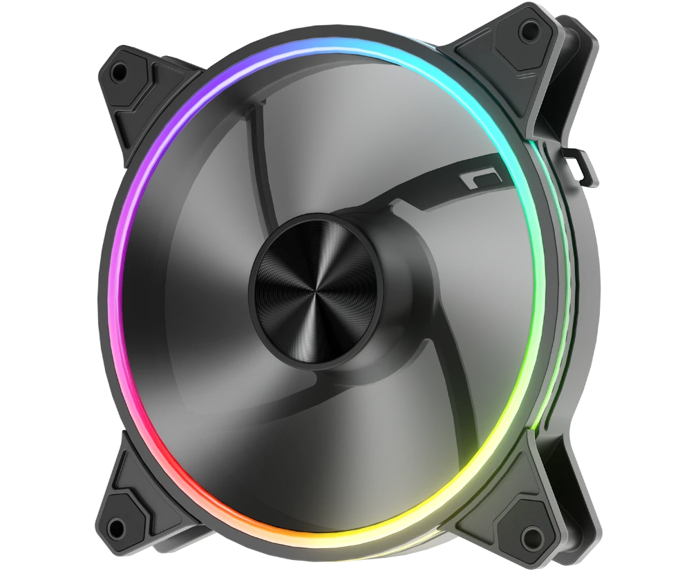 Вентилятор 1STPLAYER FO7-14 Black (FO7-14-BK) / 140mm ARGB 3pin 5V PWM 4pin 12V 700-1800rpm 76.25cfm 36.64dBA / Bulk