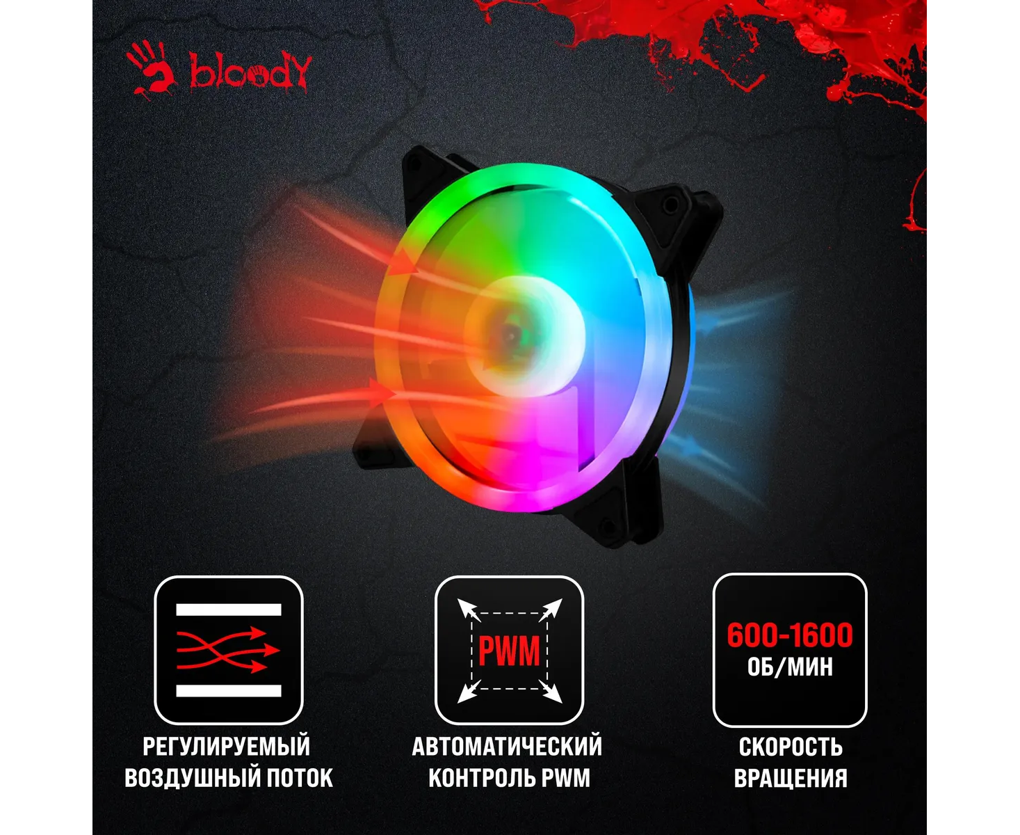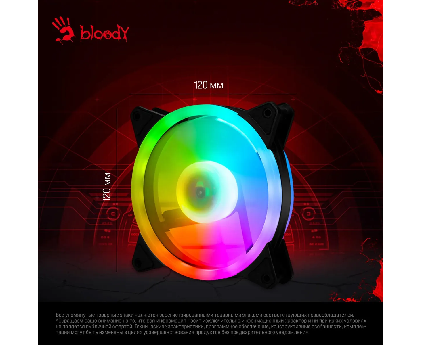 Вентилятор Bloody BD-CF120ARGB4 ARGB (BD-CF120ARGB4-BK) 120х120x25 черный 4-pin 26дБ (упак. 1шт) Ret
