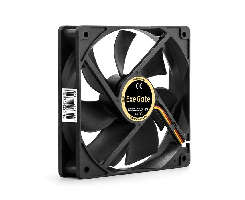 Вентилятор Exegate EX12025S3P-24 24В DC (EX297092RUS) (120x120x25 мм, Sleeve bearing (подшипник скольжения), 3pin, 2100RMP, 35dBA)