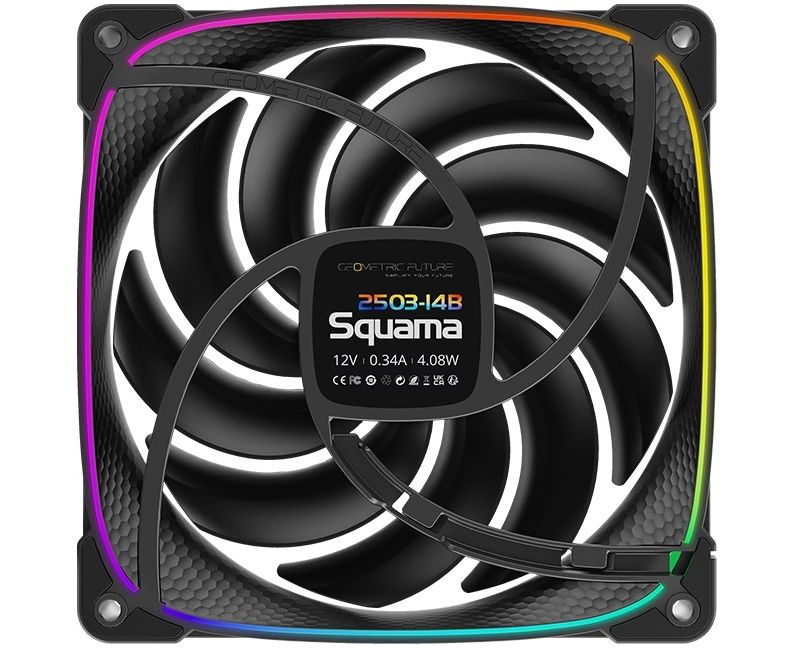 Вентилятор Geometric Future Squama 2503B-14 Single Pack (1F2503B114000) / 140mm, PWM, 2400 RPM, 91.15 CFM, 34.0 dBA, 5V ARGB, Black