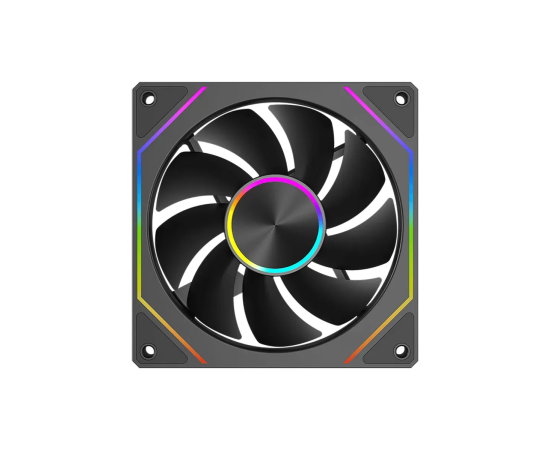 Вентилятор для корпуса PCCooler FG120 ARGB BK (120×120×25мм) с яркой ARGB-подсветкой, гидродинамическим (FDB) подшипником и диапазоном скорости 800–1800RPM обеспечивает воздушный поток до 54CFM при умеренном шуме, способен работать тихо в обычном режиме (~18–33дБ) и эффективно охлаждать систему на пике
