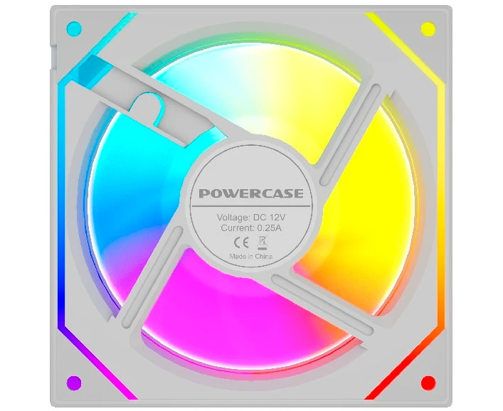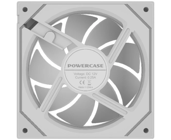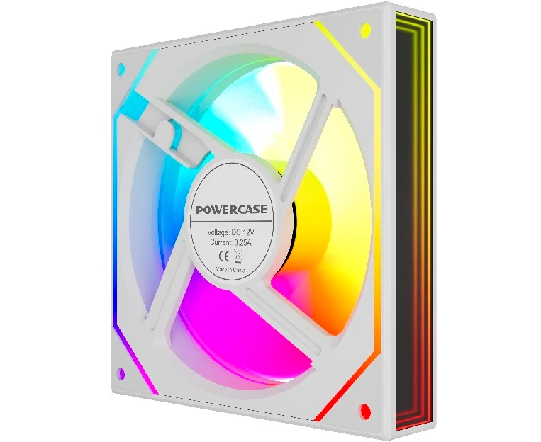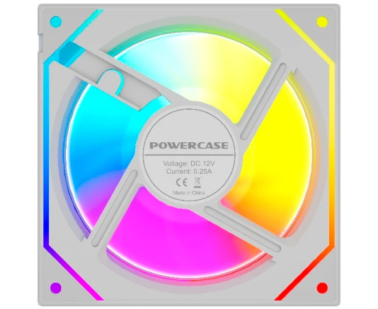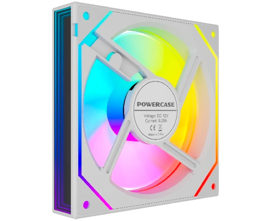 Вентилятор Powercase (M52-12W ARGB) White 120x120x25мм (PWM, 4pin PWM (M+F)+ 3pin ARGB (M+F), 600-1800 об/мин) Bulk