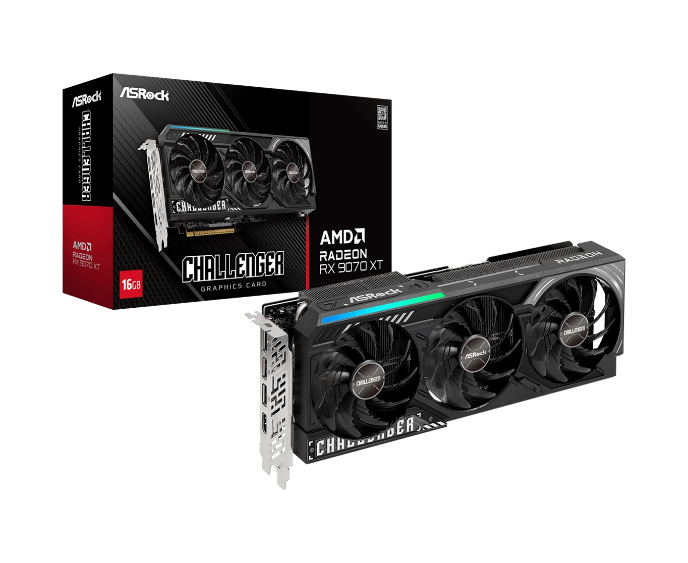 Видеокарта ASRock Radeon RX 9070 XT Challenger 16GB (RX9070XT CL 16G) //RX 9070XT, HDMI, DP*3, 16G, D6