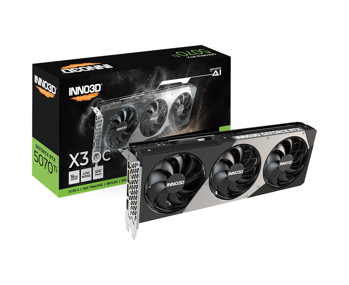 Видеокарта INNO3D RTX5070Ti X3 OC 16GB (N507T3-16D7X-176068N) GDDR7 256bit 3xDP HDMI 3Fan RTL