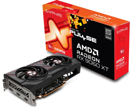 Видеокарта Sapphire AMD Radeon RX 9060XT (11350-03-20G) Pulse AMD Radeon RX 9060 XT Gaming OC 16GB Dual 16ГБ Pulse, GDDR6, OC, Ret