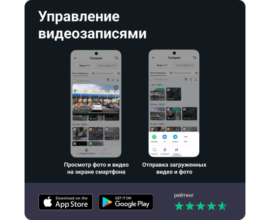 Особенности видеорегистратора: Голосовые подсказки, Запись по детектору движения, Запись события в отдельный файл, Режим фотосъемки