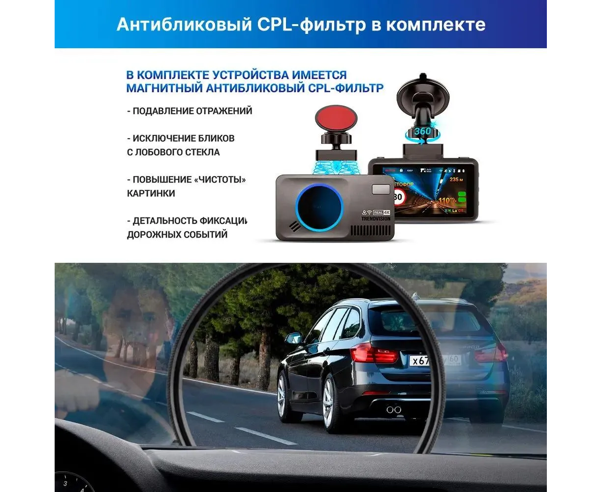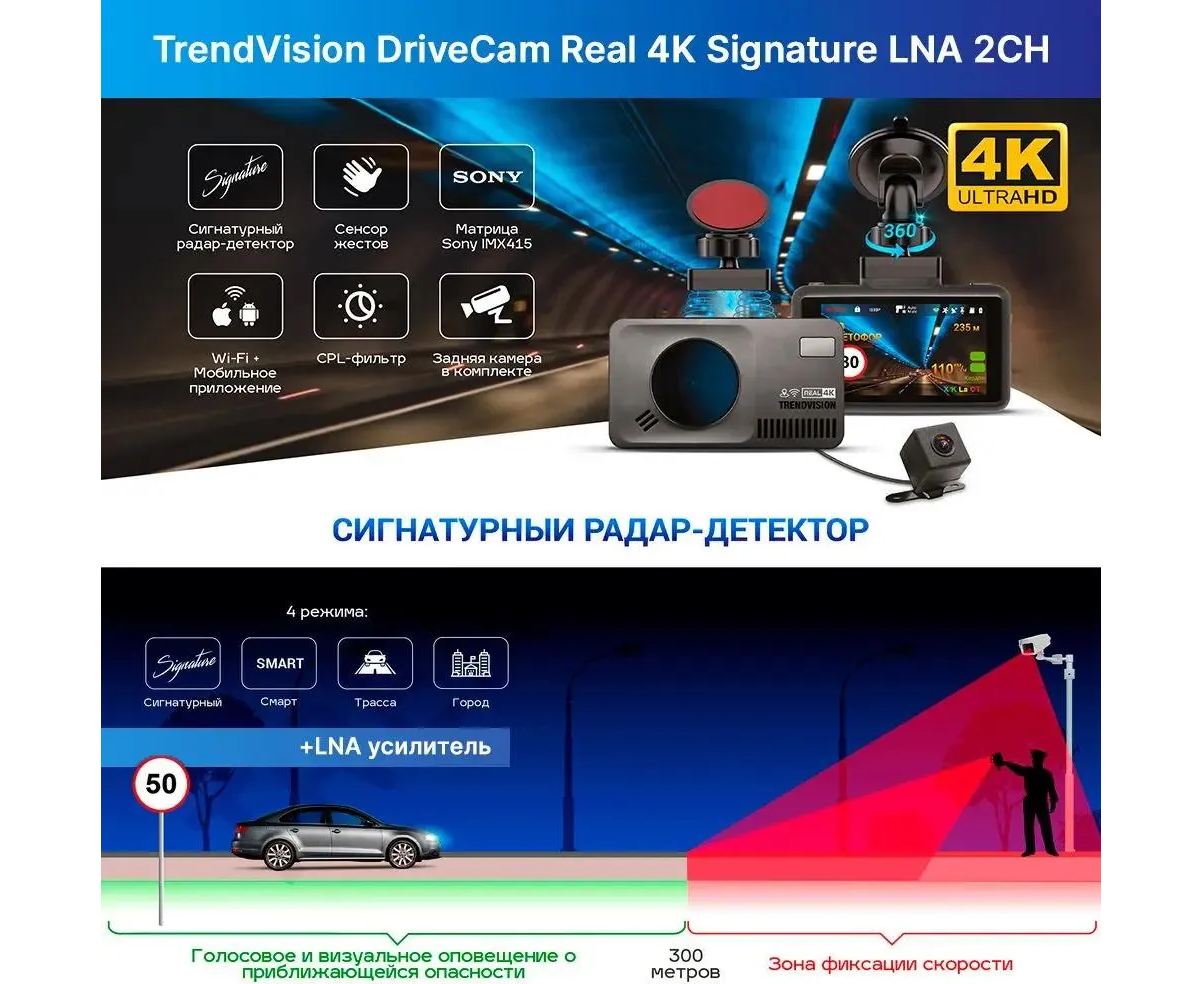 Видеорегистратор с радар-детектором TrendVision DriveCam Real 4K Signature LNA 2CH GPS ГЛОНАСС
