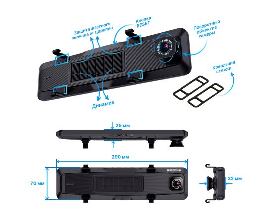 TrendVision aMirror 15 Android UNIVERSE - мультифункциональный 2-камерный Full HD видеорегистратор-зеркало