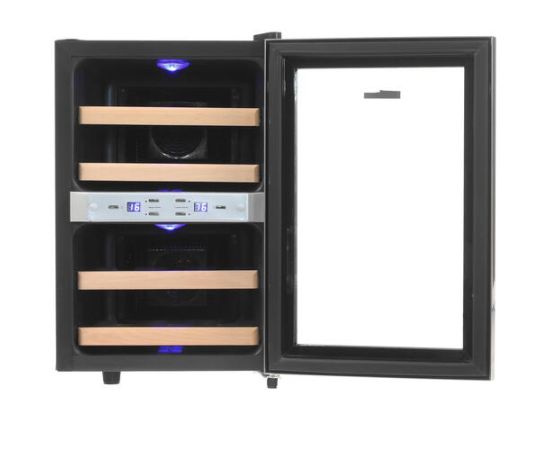 Дополнительно термоэлектрическая система охлаждения, сенсорное управление, 2 температурные зоны, голубая LED подсветка