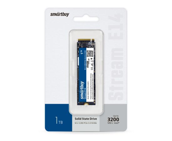 Внутренний SSD Smart Buy 1TB Stream E14, PCIe Gen3 x4, R/W - 1100/1800 MB/s, (M.2), 2280, TLC 3D NAND