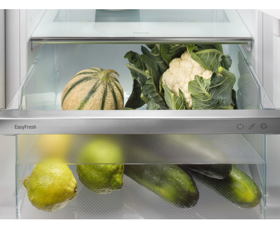 Открывая морозильное отделение, вы хотите видеть замороженные продукты, а никак не лёд или иней. NoFrost защищает морозильную камеру от нежелательного обледенения. Контейнер EasyFresh гарантирует свежесть продуктов в вашем доме, как на рынке. Неупакованные фрукты, овощи или плоды: здесь всё хранится оптимально. Благодаря плотному закрытию контейнера под воздействием продуктов в нём повышается влажность воздуха. Таким образом, продукты остаются свежими долгое время. Благодаря двум полностью раздельным контурам охлаждения DuoCooling обеспечивает отсутствие воздухообмена между холодильным и морозильным отделениями. Продукты питания не засыхают,а запах не передаётся. А это значит: меньше выбрасывать, реже ходить за покупками, больше экономить и получать удовольствие. Реальность прикосновения: сенсорный экран позволяет легко и интуитивно управлять вашим устройством Liebherr. Все функции наглядно расположены на экране. Легким касанием пальца вы можете легко выбрать функции или проверить текущую температуру холодильника.