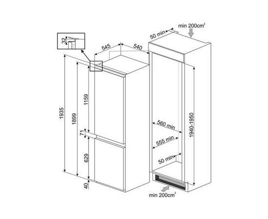 Характеристики Встраиваемый холодильник Smeg C8194TNE