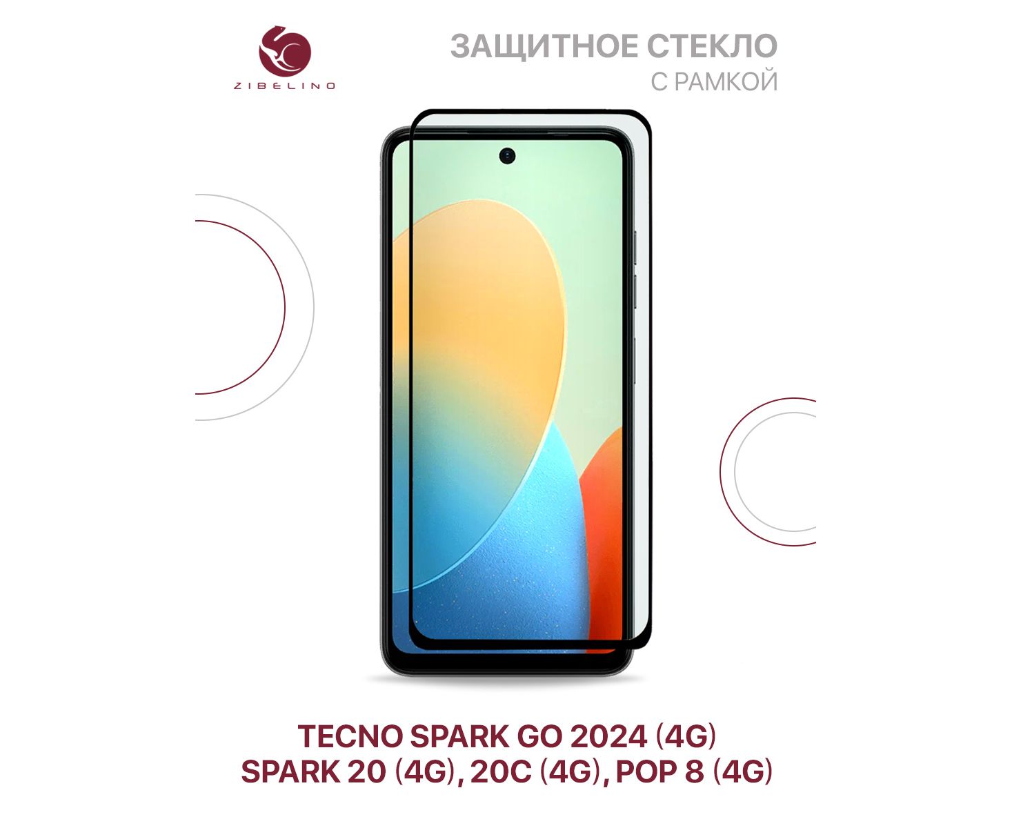 Защитное стекло для Tecno Spark Go 2024 (4G), Spark 20 (4G), Spark 20C (4G), Tecno Pop 8 (4G) с рамкой (Текно Спарк Го 2024, Текно Спарк 20 20С, Техно Поп 8)