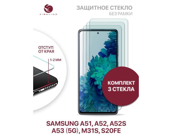 Защитное стекло (Комплект 3 шт) для Samsung Galaxy A51, A52, A52S, A53 5G, M31S, S20 FE без рамки с отступом от краев, Самсунг Галакси А51 А52 А52S А53 5G М31S S20 ФЕ