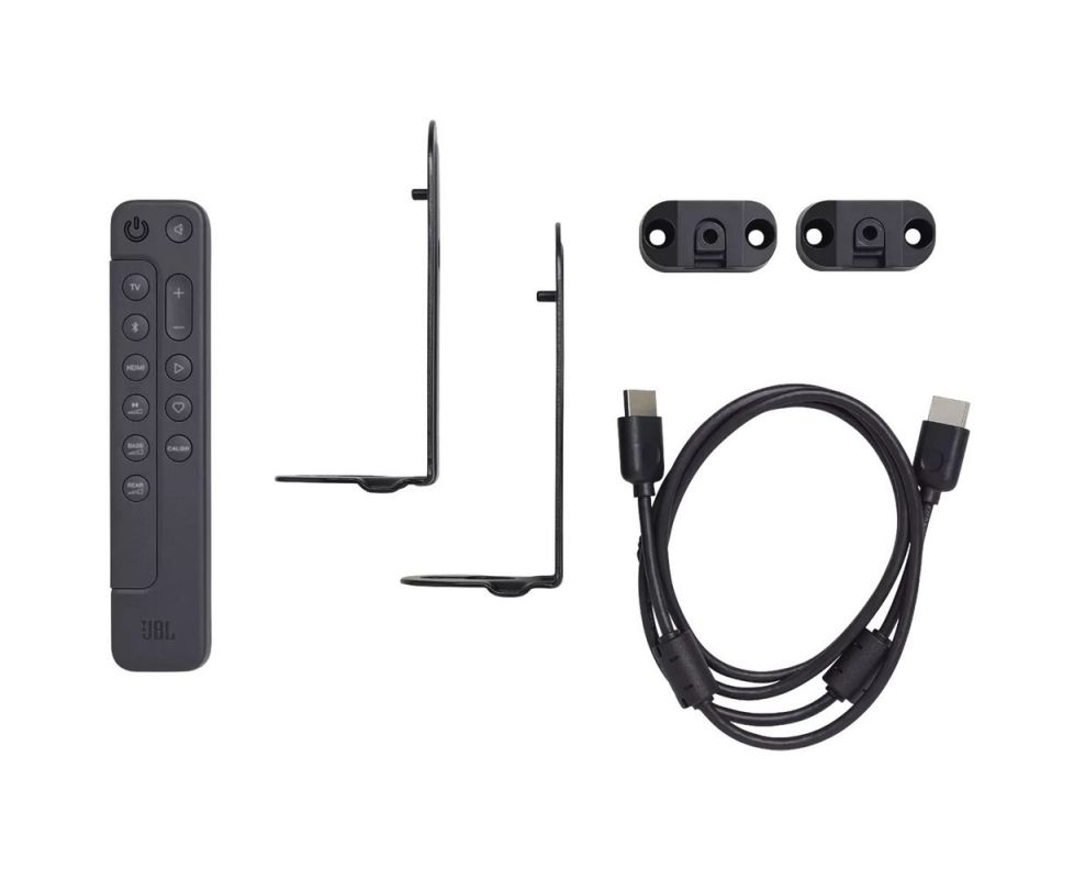 В топовую систему JBL Bar 1000 входит беспроводный сабвуфер с 400-ваттным усилителем и активный саундбар-«трансформер», который оснащается двумя сателлитами, присоединенными к правой и левой частям его корпуса с помощью магнитных креплений. Сателлиты можно «отстегнуть» от звуковой панели (крепления оснащены магнитами) и использовать в беспроводном режиме в тыловой зоне, что позволяет построить полноценную 9.1-канальную систему объемного звучания. Каждый из них оснащается встроенным усилителем и аккумулятором, рассчитанным на 10 часов работы, причем зарядить батарею можно при подсоединении к саундбару или же через порт Micro-USB сателлита.